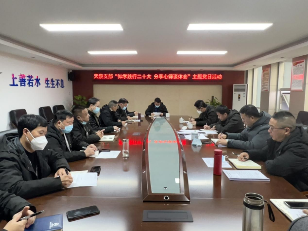 為認真領悟黨的二十大提出的新思想新論斷、作出的新部署新要求,推動黨的二十大精神入腦入心、落到實處,12月29日,天泉支部開展了“知學踐行二十大 分享心得談體會”主題黨日活動,專題交流學習黨的二十大報告精神心得體會。會議由支部書記鐘洪勇主持,全體黨員參加。